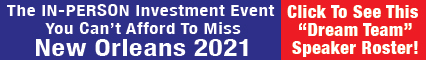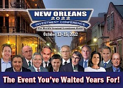 | Not since the 1970s has the world faced such a formidable and uncertain investing environment. The risks — and opportunities — facing us today are decades in the making. And just in time comes a blockbuster event…a gathering that will be talked about for years to come…showing investors how to navigate the turbulence ahead. It’s all happening at the 49th annual New Orleans Investment Conference, being held from November 1-4 in the heart of all the music, food, and fun of “the city that care forgot.” |
